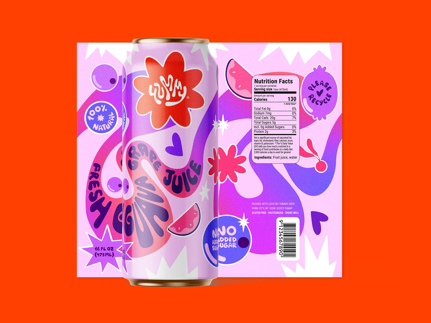 เอกลักษณ์ของแบรนด์ด้วยภาพอันเป็นเอกลักษณ์ของ Yummy นั้นสนุกสนานและกล้าหาญ การออกแบบตัวอักษรที่ใช้กับฉลากและสื่อการตลาดทั้งหมดนั้นวาดด้วยมือทั้งหมด โดยมีรูปทรงออร์แกนิก มุมอ้วน และสามารถปรับให้เข้ากับพื้นที่ที่แทรกเข้าไปได้ ลักษณะเหล่านี้ทำให้มีบุคลิกภาพที่อ่อนเยาว์มากขึ้น โดยกลุ่มเป้าหมายคือวัยรุ่นและผู้ใหญ่วัยหนุ่มสาวที่ใส่ใจสิ่งแวดล้อม สไตล์ที่สนุกสนานและเข้าถึงได้นี้ยังทำให้การออกแบบโดดเด่นกว่าคู่แข่งอีกด้วย