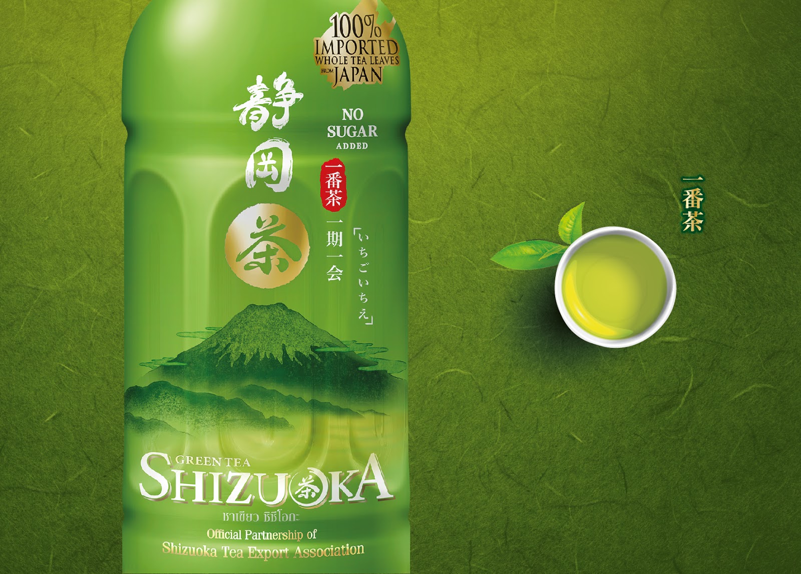 ชาเขียวชิซึโอกะเป็นความร่วมมือระหว่างจังหวัดชิซึโอกะและบริษัท อิชิตัน กรุ๊ป จำกัด (มหาชน) มีวัตถุประสงค์เพื่อสร้างการรับรู้ในหมู่คนไทยเกี่ยวกับชิซูโอกะในฐานะเมืองหลวงแห่งชาของญี่ปุ่น ผลิตภัณฑ์ดังกล่าวได้รับสิทธิ์เป็นหุ้นส่วนอย่างเป็นทางการของสมาคมส่งออกชาชิซูโอกะ โดยการเลือก “อิจิบังชะ”: การเก็บเกี่ยวครั้งแรกของฤดูกาล ใบชาจะเต็มไปด้วยคุณค่าทางโภชนาการ ซึ่งได้จากธารหิมะที่ละลายจากปลายปากฟูจิ พร้อมด้วยแร่ธาตุจากดินภูเขาไฟถือเป็นกุญแจสำคัญของคุณภาพชา คุณค่าทางโภชนาการสูง กลิ่นหอมอ่อนๆ และรสชาติที่ละเอียดอ่อนทำให้ชาชิซึโอกะมีลักษณะเฉพาะที่แตกต่าง