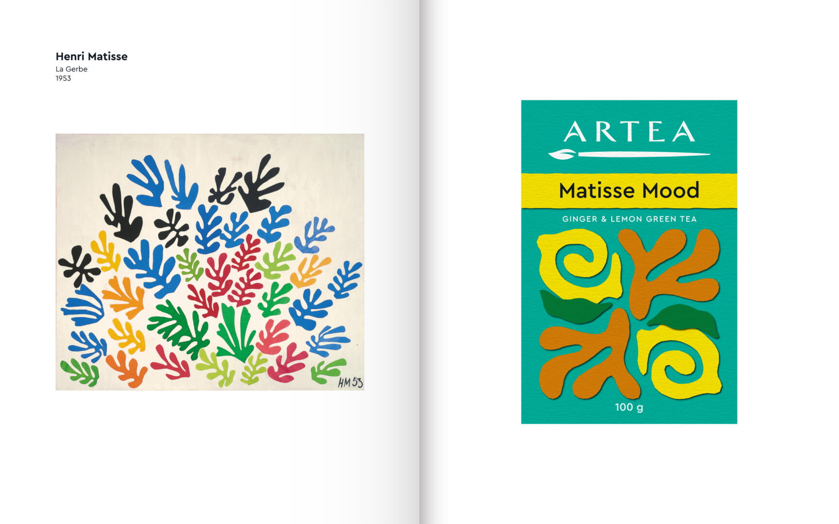 ชาและศิลปะผสมผสานรสชาติ ฉันได้นำศิลปินสิบคนมาอธิบายแนวคิดนี้ ทุกอย่างเริ่มต้นจากจัตุรัสดำของ Malevich ฉันรู้สึกประหลาดใจเมื่อเห็นเส้นใบในรอยแตกของ Black Square ฉันพยายามจับแก่นแท้ของสไตล์ของศิลปินแต่ละคนและผสมผสานเข้ากับชา ARTea — รสชาติของความคิดสร้างสรรค์!